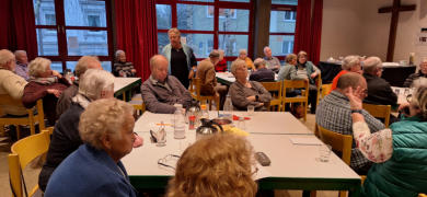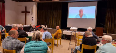 Von jedem Mitglied, dass gerade spricht, wird der Name genannt und das Foto auf der Leinwand gezeigt!